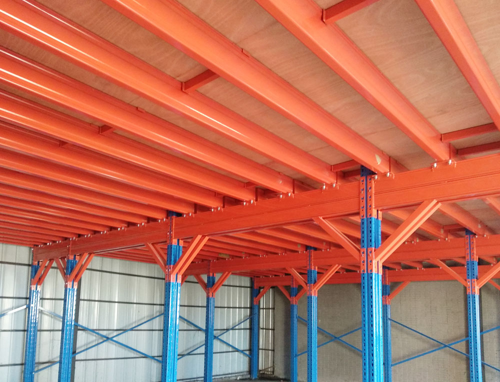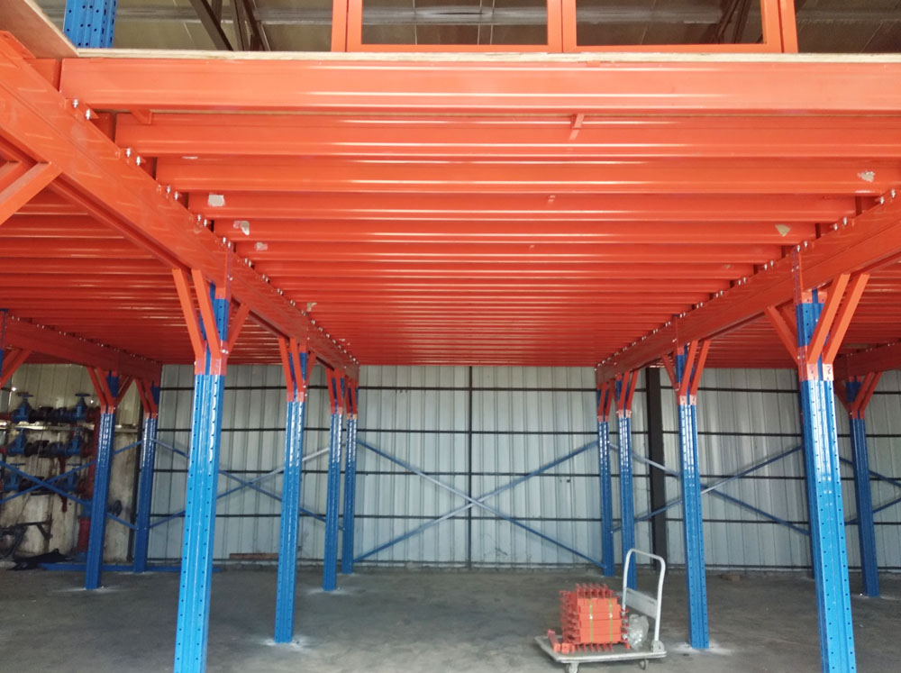 鋼平臺通??稍O計2~3層,分隔出的空間可做存儲或辦公用。根據倉庫面積、高度、貨物大小等定制,可避梁避柱。設置有樓梯和貨物升降電梯等,還可預留理貨平臺,使搬運車與貨物升降電梯合理的銜接起來,從而充分的利用空間。