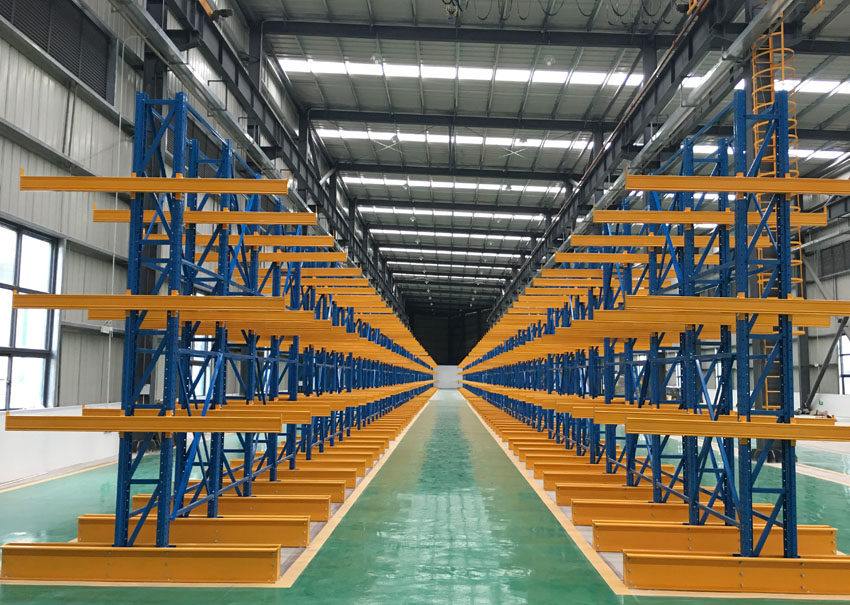 懸臂式貨架適合存放長短不一的板條形貨物,如:鋼板、鋼管、長箱體等。可根據現場狀況設計成單面懸臂或雙面懸臂,懸臂末端安裝擋塊防止貨物滾落。