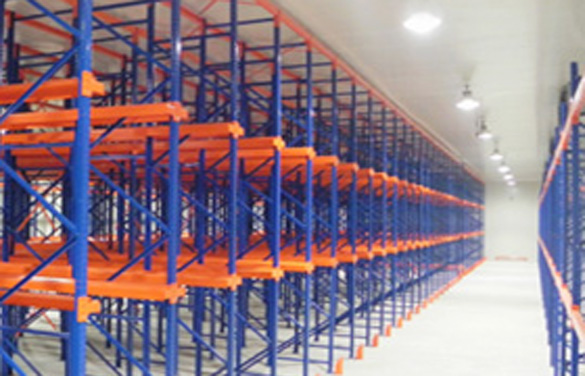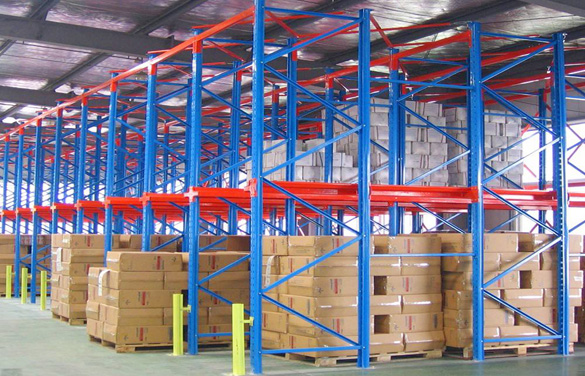 駛入式貨架采用托盤存取模式,其設計原理是把數排傳統式貨架連接起來,設有專用的走道,其配置方式可以為兩組駛入式貨架背對背安裝,或者單一組靠墻,叉車的進出皆使用相同的走道。