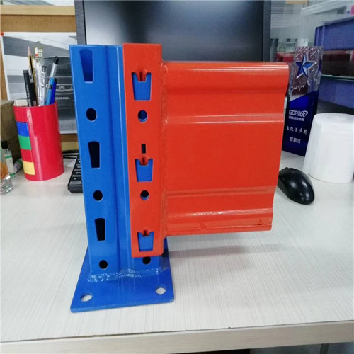 7.貨架外形更安全,防止叉車碰撞還可以增加立柱護腳、防撞桿。為了層載更安全還可在橫梁上安置擱擋、層板、網片跨梁等附屬設施。